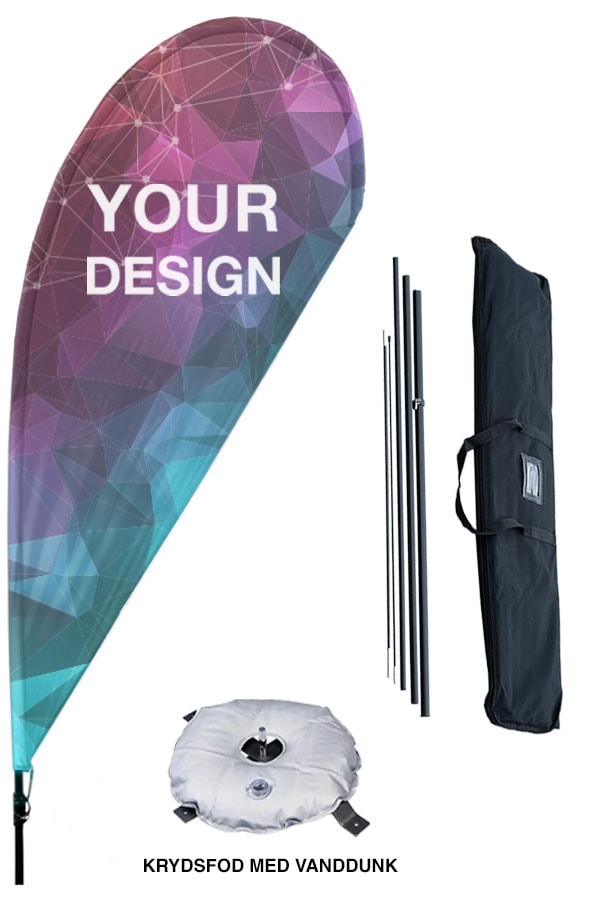 Beachflag Premium Drop / Dråbeform - komplet sæt med flag, stang, valgfri fos samt taske