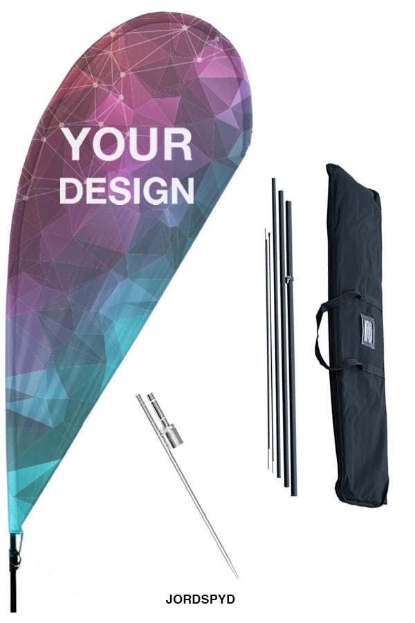 Beachflag Premium Drop / Dråbeform - komplet sæt med flag, stang, valgfri fos samt taske