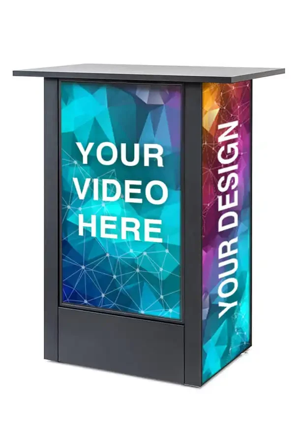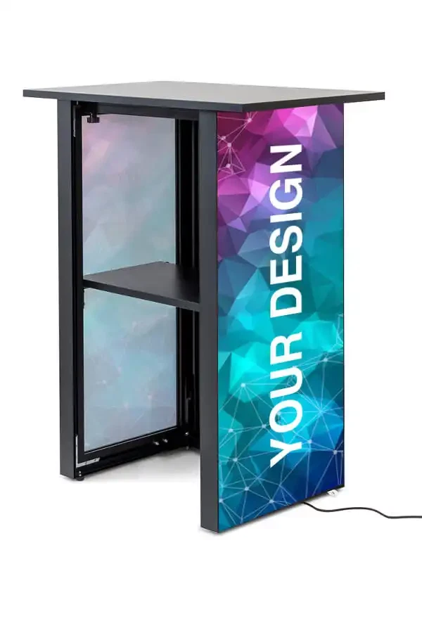Oplev en messedisk fra LetUsPrint.dk i absolut særklasse – Digital Counter med 32” Samsung-skærm forener et eksklusivt look med funktionalitet og fremtidens teknologi. Det futuristiske design og de gennemtænkte detaljer gør disken til den perfekte løsning til messer, events, butikscentre og pop-up shops. Alt det nødvendige er inkluderet, og opsætningen klarer du på få sekunder – helt uden brug af værktøj.