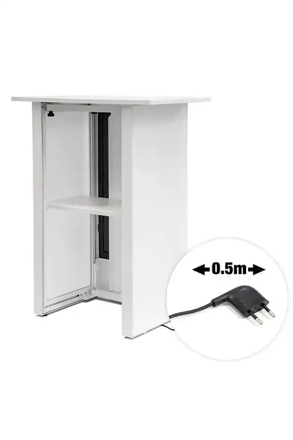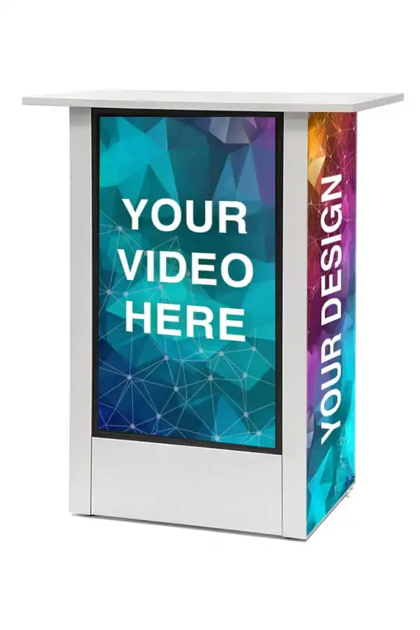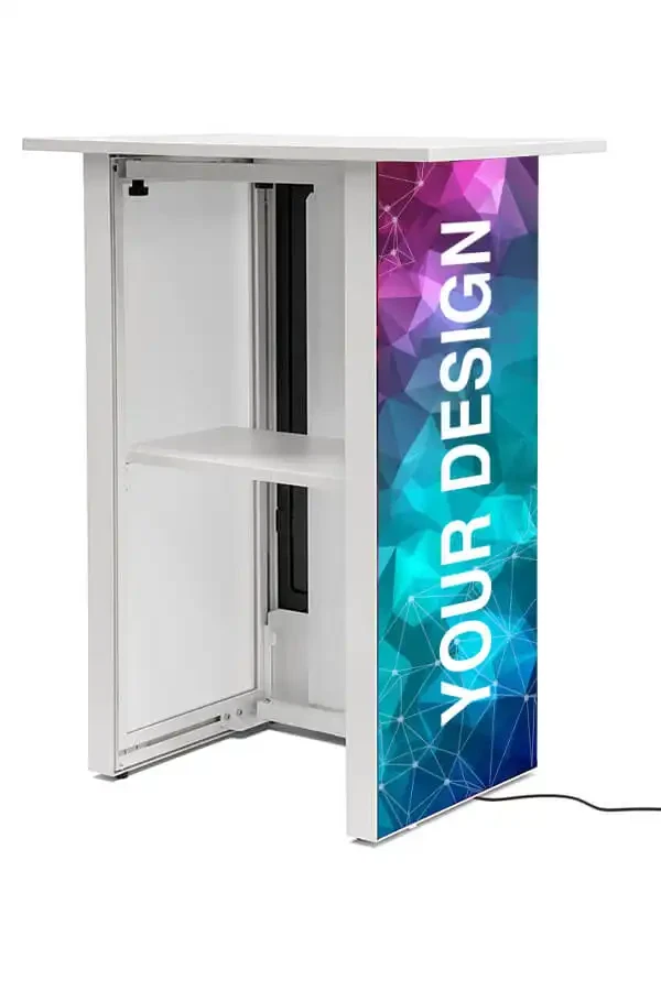 Oplev en messedisk fra LetUsPrint.dk i absolut særklasse – Digital Counter med 32” Samsung-skærm forener et eksklusivt look med funktionalitet og fremtidens teknologi. Det futuristiske design og de gennemtænkte detaljer gør disken til den perfekte løsning til messer, events, butikscentre og pop-up shops. Alt det nødvendige er inkluderet, og opsætningen klarer du på få sekunder – helt uden brug af værktøj.