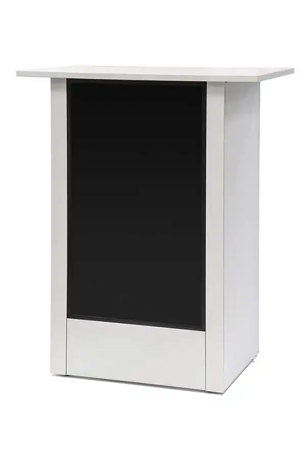 Inde i disken finder du en praktisk opbevaringshylde, så materialer og personlige ejendele kan gemmes væk. Det giver et ryddeligt udtryk og sikrer, at al opmærksomhed samler sig om din visuelle præsentation.