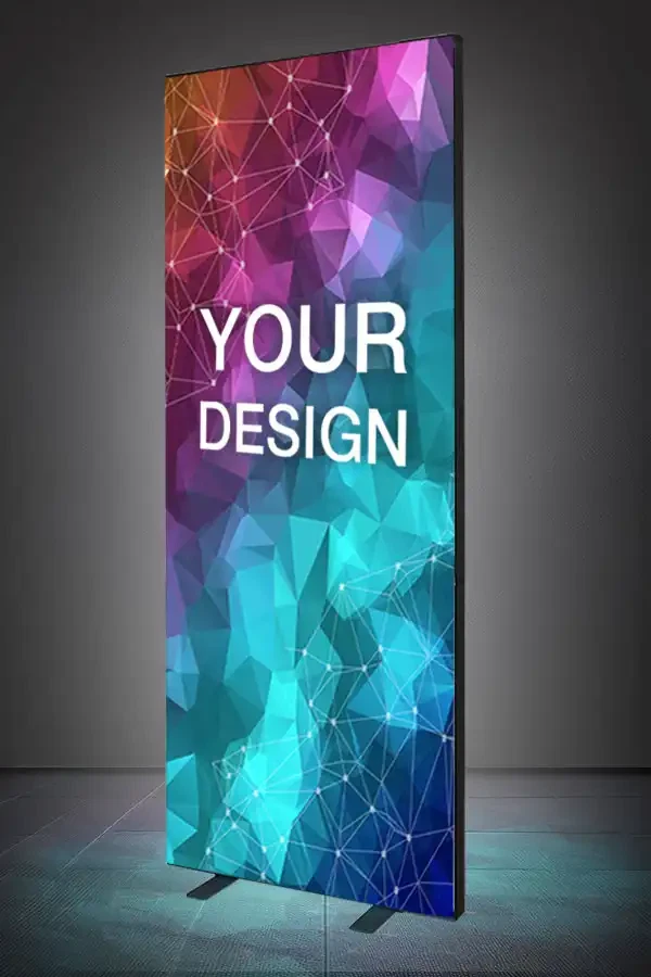 LED Lightbox Display Black 100x250 cm er vores største og mest iøjnefaldende model – designet til at give maksimal synlighed i professionelle miljøer som messer, butikker, showrooms og events. Den sorte ramme giver et eksklusivt og moderne udtryk.
