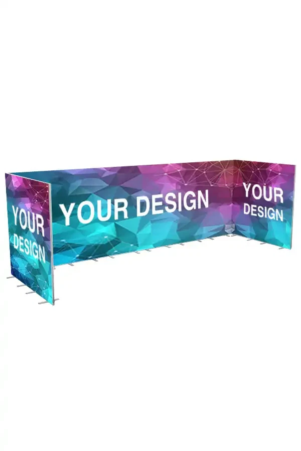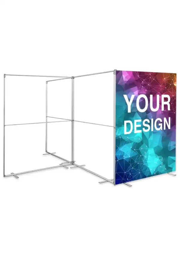 Display SEG Modular kan nemt udbygges til eb større messevæg eller messtand ved at sammen sætte flere moduler. Display SEG Modular er designet til at du kan sammensætte flere vægge og benytte en banner til til den samlede væg. Dermed undgår man synlige samlinger mellem de enkelte moduler.