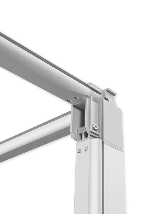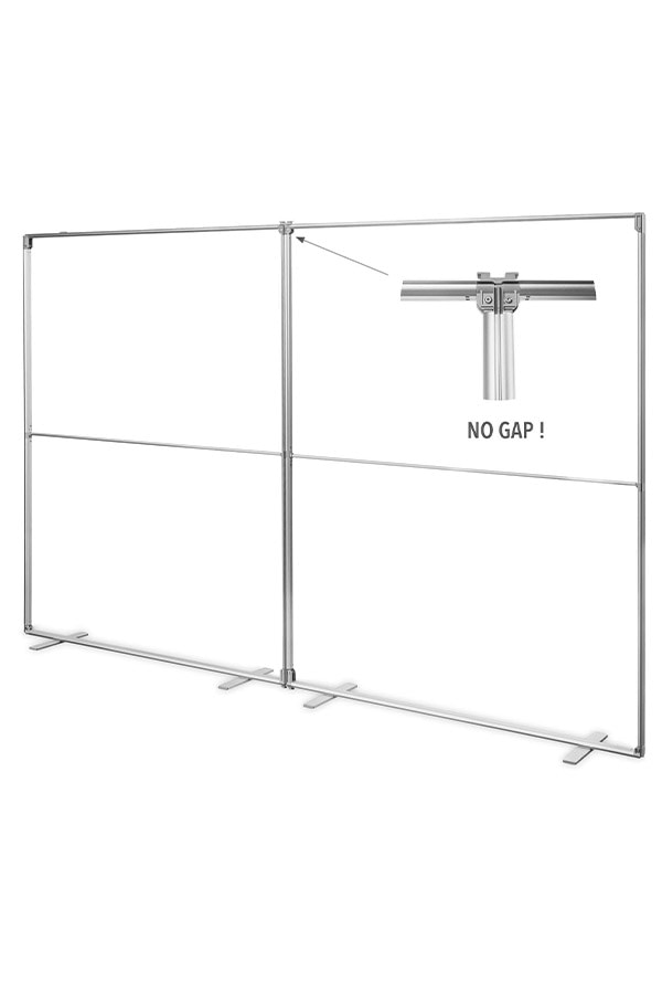 Display SEG Modular kan nemt udbygges til eb større messevæg eller messtand ved at sammen sætte flere moduler. Display SEG Modular er designet til at du kan sammensætte flere vægge og benytte en banner til til den samlede væg. Dermed undgår man synlige samlinger mellem de enkelte moduler.