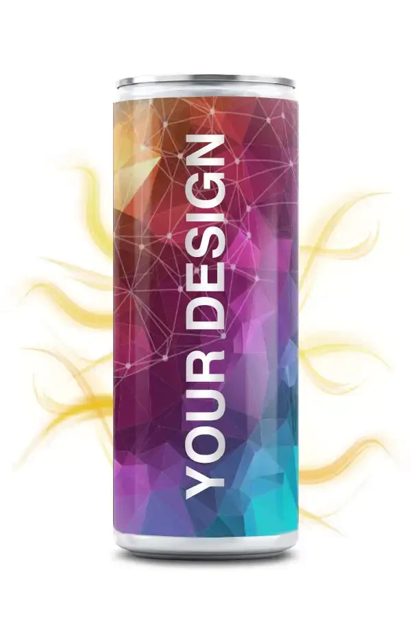 Boost din markedsføring med energidrik. LetUsPrint.dk tilbyder en flot slim dåse med 250 ml velsmagende energidrik.