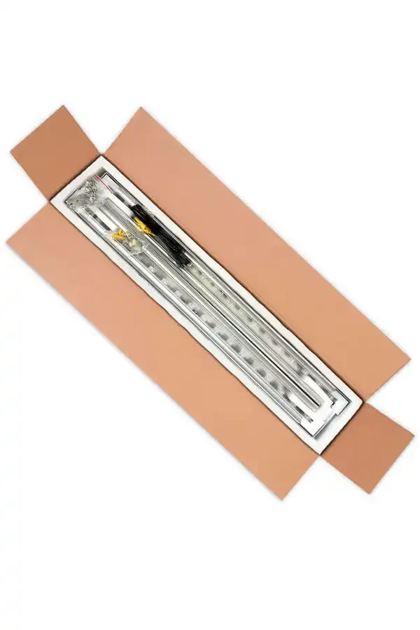 Størrelse på ydre forsendelses papkasse: 42 x 118 x 14 cm.