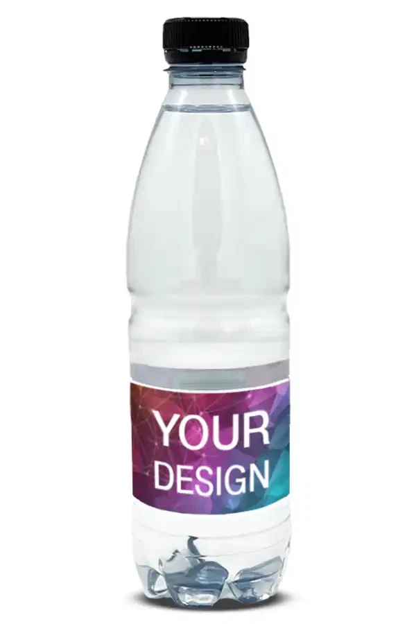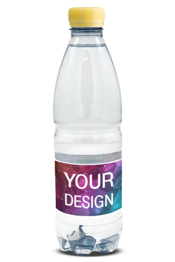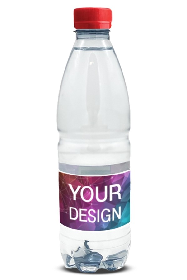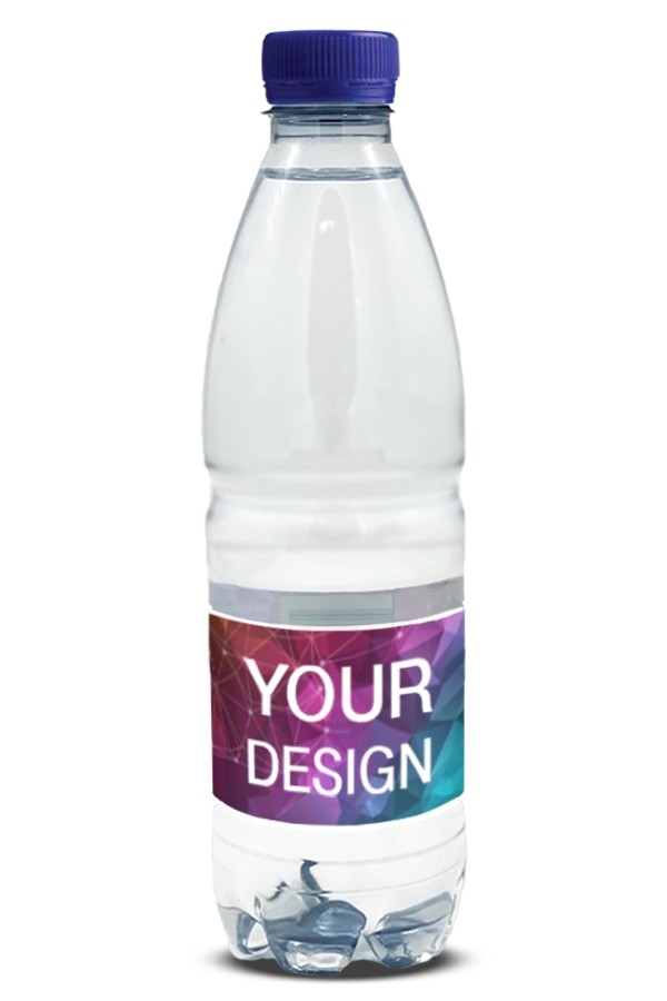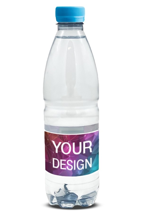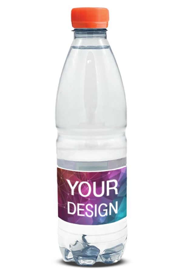 Dansk logovand 0,5 l - Vand med logo i flasker af PET i 80% genanvendt plast