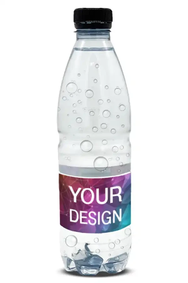 Dansk logovand med brus 0,5 l - Vand med logo i flasker af PET i 80% genanvendt plast