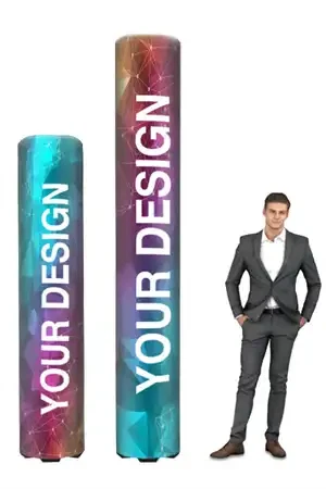 Pylon oppustelig - Standard er en let og mobil reklamesøjle, der er perfekt til promovering af dit brand eller produkt. Denne oppustelige søjle er utrolig nem at bruge og kræver ikke en permanent strømforsyning eller kontinuerlig blæser. Med en fuldt printbar overflade kan du tilpasse søjlen efter dine egne behov og skabe et iøjnefaldende design, der skiller sig ud fra mængden. Den medfølgende vandfyldige base giver en høj stabilitet, og den elastiske, lugtfri kerne er lavet af gennemsigtig folie, der er oppustelig.