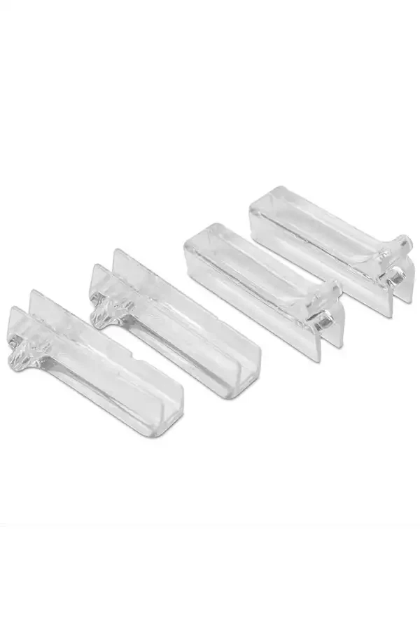 Beslagene er gennemsigtige og lette at montere – og de leveres i sæt med 4 stk. Typisk anvendes 4 beslag til at samle to LED Lightbox Displays. De passer perfekt sammen systemets magnetiske sider og skaber en næsten usynlig samling.
