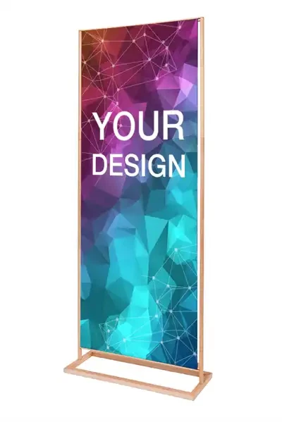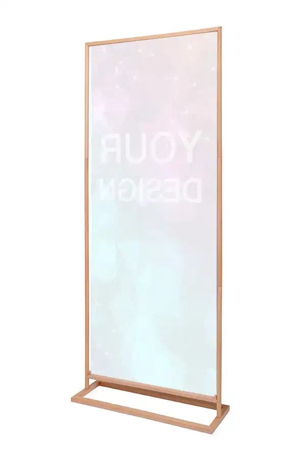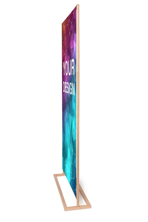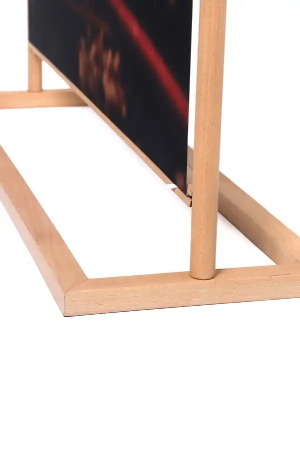 Den udskiftelige, PVC-fri tekstilgrafik med 100 % PES-keder i top og bund gør det nemt at skifte budskab - og samtidig efterlader du et grønnere aftryk. Uanset om du bruger Wood Display til branding, velkomstskilte eller kampagner, passer den perfekt ind i både events, showrooms, receptioner og hoteller.